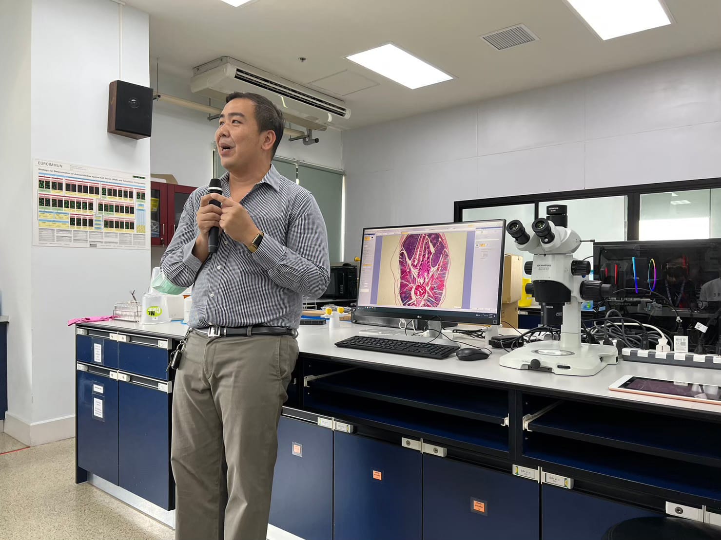 ภาควิชาเวชศาสตร์การธนาคารเลือดฯ ได้จัดบริการวิชาการผ่านกิจกรรมเพิ่มพูนความรู้การใช้งานกล้องจุลทรรศน์ชนิดต่าง ๆ โดยมีวิทยากรผู้ทรงคุณวุฒิจากบริษัท เดอะ ไซแอนซ์ แอนด์ เอ็ดดูเคชั่นแนล จำกัด มาให้ความรู้เกี่ยวกับการใช้งานกล้องจุลทรรศน์ และการเลือกใช้กล้องจุลทรรศน์ให้เหมาะกับงาน พร้อมกันนี้ วิทยากร และบริษัท ได้นำตัวอย่างกล้องจุลทรรศน์รูปแบบต่างๆ เช่น ประเภท Upright microscope, Stereo microscope, Inverted microscope, และ Digital camera เป็นต้น มาจัดแสดงและวิทยากรได้สาธิตการใช้งานกล้องจุลทรรศน์ชนิดต่างๆ ในกิจกรรมนี้ด้วย