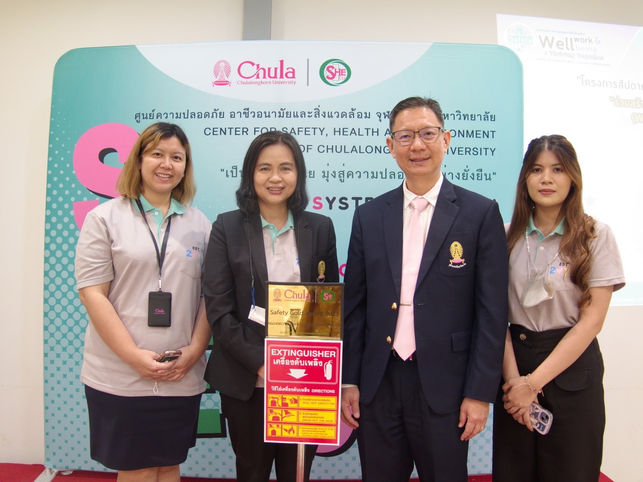 ในวันศุกร์ที่ 18 สิงหาคม 2566 รองศาสตราจารย์ ดร.วนิดา หลายวัฒนไพศาล รองคณบดีฝ่ายวิจัย นวัตกรรม และวิรัชกิจฯ ประธานคณะกรรมการความปลอดภัย อาชีวอนามัยและสภาพแวดล้อมในการทำงาน (คปอ.) คณะสหเวชศาสตร์ ได้เป็นตัวแทนคณบดี คณะสหเวชศาสตร์ เข้ารับรางวัลประเภทส่วนงานที่มีผลงานด้านความปลอดภัยโดดเด่นอย่างต่อเนื่อง ระดับ Gold Award ภายใต้ โครงการประกวดส่วนงานและบุคลากร ด้านความปลอดภัย ประจำปี 2566 จากรองอธิการบดี ศาสตราจารย์ ดร.จักรพันธ์ สุทธิรัตน์ และได้บรรยาย Safety Talk หัวข้อ “ร่วมสร้างประชาคมจุฬาฯ ปลอดภัย กับ ความท้าทายในการยกระดับความปลอดภัยรั้วจามจุรี เพื่อกระตุ้นและสร้างแรงจูงใจในการปฏิบัติงานด้านความปลอดภัยฯ และเป็นแบบอย่างในการดำเนินงานด้านความปลอดภัยกับส่วนงานที่สนใจงานด้านความปลอดภัย ในงานสัปดาห์ความปลอดภัย Chula Safety 2023 : Wellwork & Wellbeing: Thriving Together ณ ห้อง 308 ชั้น 3 อาคารจามจุรี 9 โดยนางนริศรา ตระกูลนุช (ผู้อำนวยการฝ่ายวิชาการ) และนางสาวญาณิศา หวานจริง (เจ้าหน้าที่ความปลอดภัยในการทำงาน) เป็นตัวแทน คปอ.คณะสหเวชศาสตร์ เข้าร่วมแสดงความยินดี