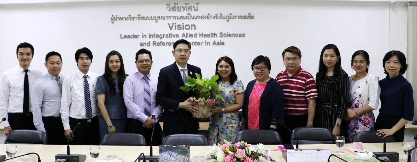 เมื่อวันพุธที่ ๑๓ กุมภาพันธ์ พุทธศักราช ๒๕๖๒ เวลา ๑๔.๐๐ – ๑๕.๓๐ น. ณ ห้องประชุมอาคารจุฬาพัฒน์ ๑ ชั้น ๒ คณะสหเวชศาสตร์ ผู้ช่วยศาสตราจารย์ ดร.ปาลนี อัมรานนท์ คณบดี คณะสหเวชศาสตร์พร้อมผู้บริหาร ให้การต้อนรับ ศาสตราจารย์ ดร.บัณฑิต เอื้ออาภรณ์ อธิการบดี จุฬาลงกรณ์มหาวิทยาลัย ในโอกาสเข้าเยี่ยมคณะสหเวชศาสตร์