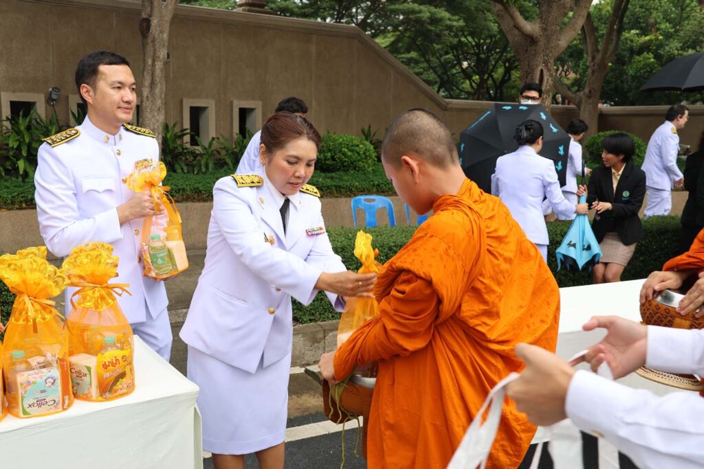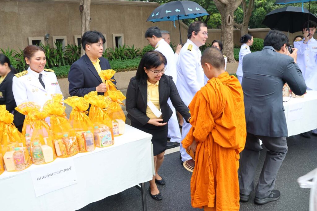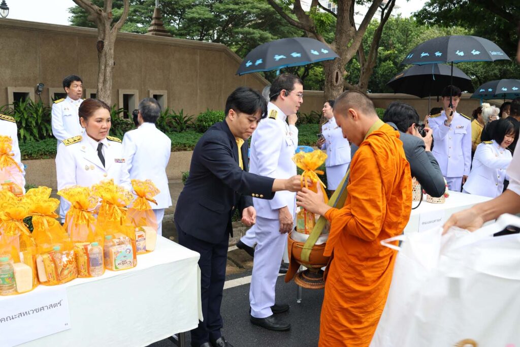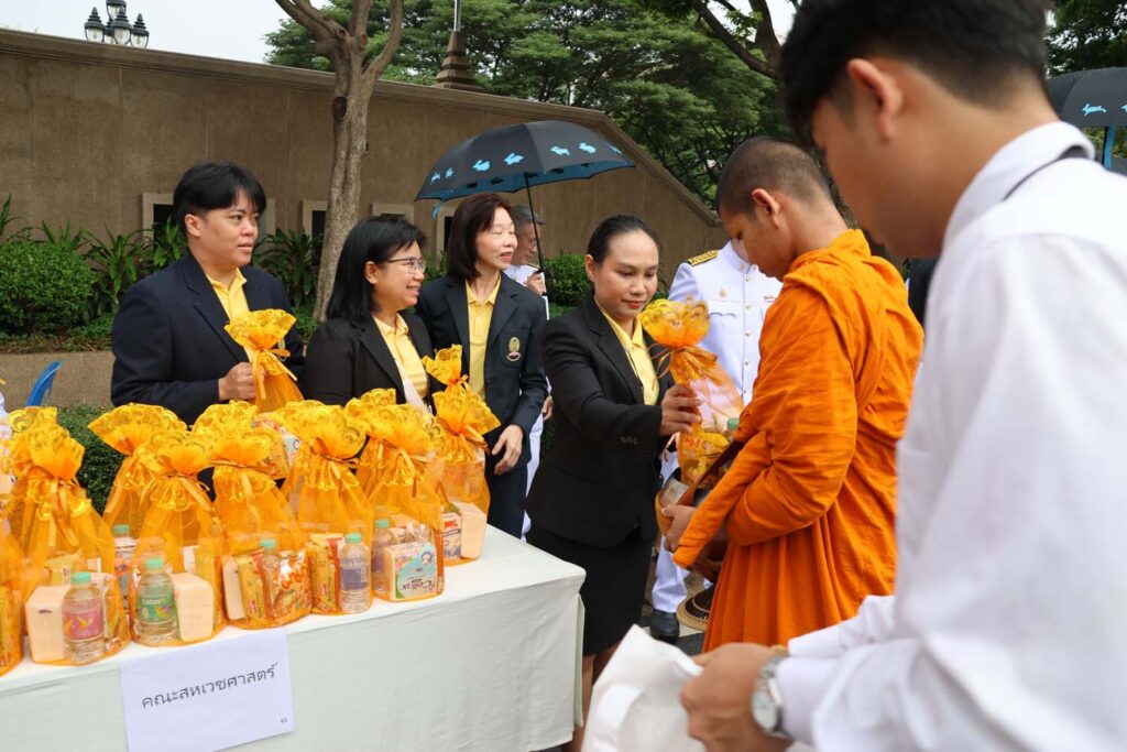 เมื่อวันที่ ๒๖ กรกฎาคม ๒๕๖๗ เวลา ๐๗.๐๐ น. หอประชุมจุฬาลงกรณ์มหาวิทยาลัย รองศาสตราจารย์ ดร.ปาลนี อัมรานนท์ คณบดีคณะสหเวชศาสตร์ พร้อมผู้บริหารและบุคลากรคณะสหเวชศาสตร์ ร่วมกิจกรรมเฉลิมพระเกียรติพระบาทสมเด็จพระเจ้าอยู่หัว เนื่องในโอกาสมหามงคลเฉลิมพระชนมพรรษา ๖ รอบ ๗๒ พรรษา ๒๘ กรกฎาคม ๒๕๖๗ โดย ศาสตราจารย์พิเศษ ดร.สุรเกียรติ์ เสถียรไทย นายกสภามหาวิทยาลัย และ ศาสตราจารย์ ดร.วิเลิศ ภูริวัชร ผู้รักษาการแทนอธิการบดี นำกล่าวถวายความเคารพ ร่วมร้องเพลงสรรเสริญพระบารมี พระบรมฉายาลักษณ์ พระบาทสมเด็จพระปรเมนทรรามาธิบดีศรีสินทรมหาวชิราลงกรณ พระวชิรเกล้าเจ้าอยู่หัว และร่วมพิธีตักบาตรพระสงฆ์ ๗๓ รูป รอบบริเวณหอประชุมจุฬาลงกรณ์มหาวิทยาลัย