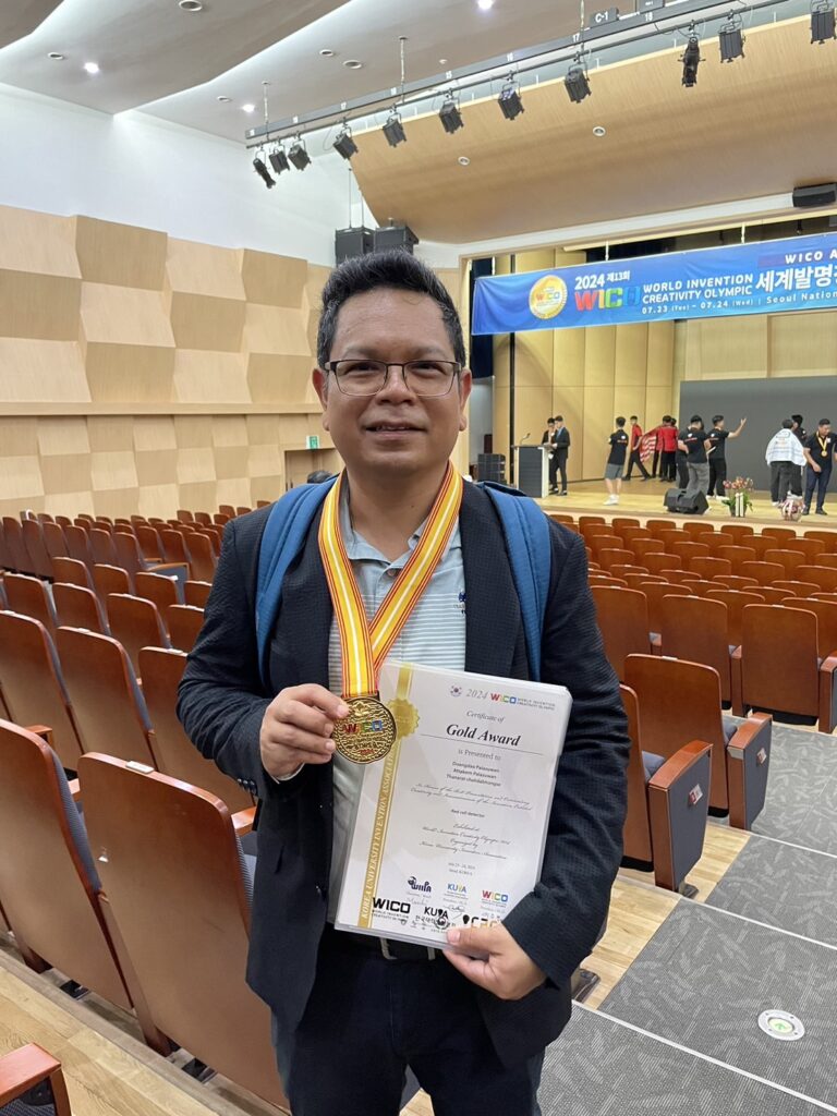 ในงานประชุม The 13th 2024 World Invention Creativity Olympics & Conference จัดโดย Korea University Invention Association (KUIA) and World Invention Intellectual Property Association (WIIPA) ณ Seoul National University of Education Convention Hall ระหว่างวันที่ 23-24 กรกฎาคม 2567 ณ มหาวิทยาลัย Seoul National University of Education กรุงโซล สาธารณรัฐเกาหลี ซึ่งมีผู้เข้าร่วมประมาณ 2000 คน จาก 25 ประเทศทั่วโลก