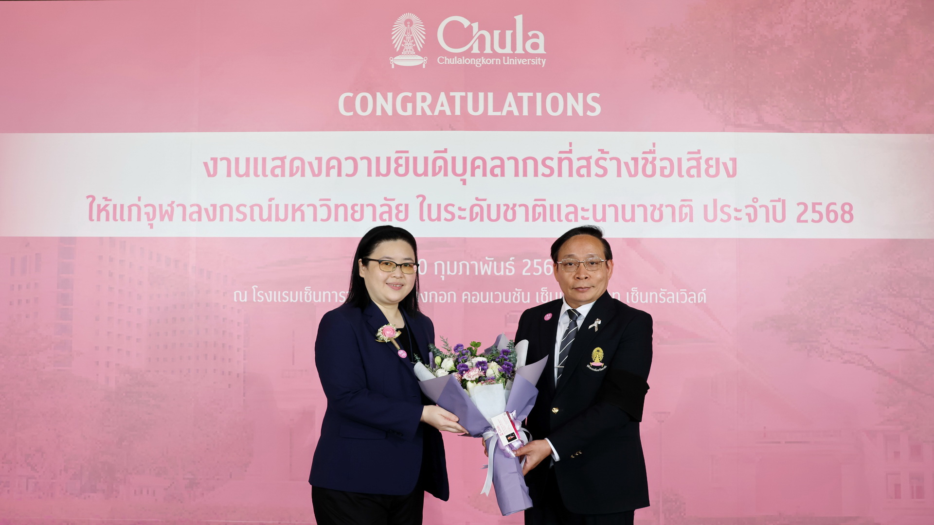 ผู้ช่วยศาสตราจารย์ ดร.เทวิน เทนคำเนาว์ คณบดีคณะสหเวชศาสตร์ จุฬาลงกรณ์มหาวิทยาลัย เข้าร่วมแสดงความยินดีแก่บุคลากรจุฬาลงกรณ์มหาวิทยาลัยที่สร้างชื่อเสียงให้แก่มหาวิทยาลัย ประจำปี พ.ศ. 2568