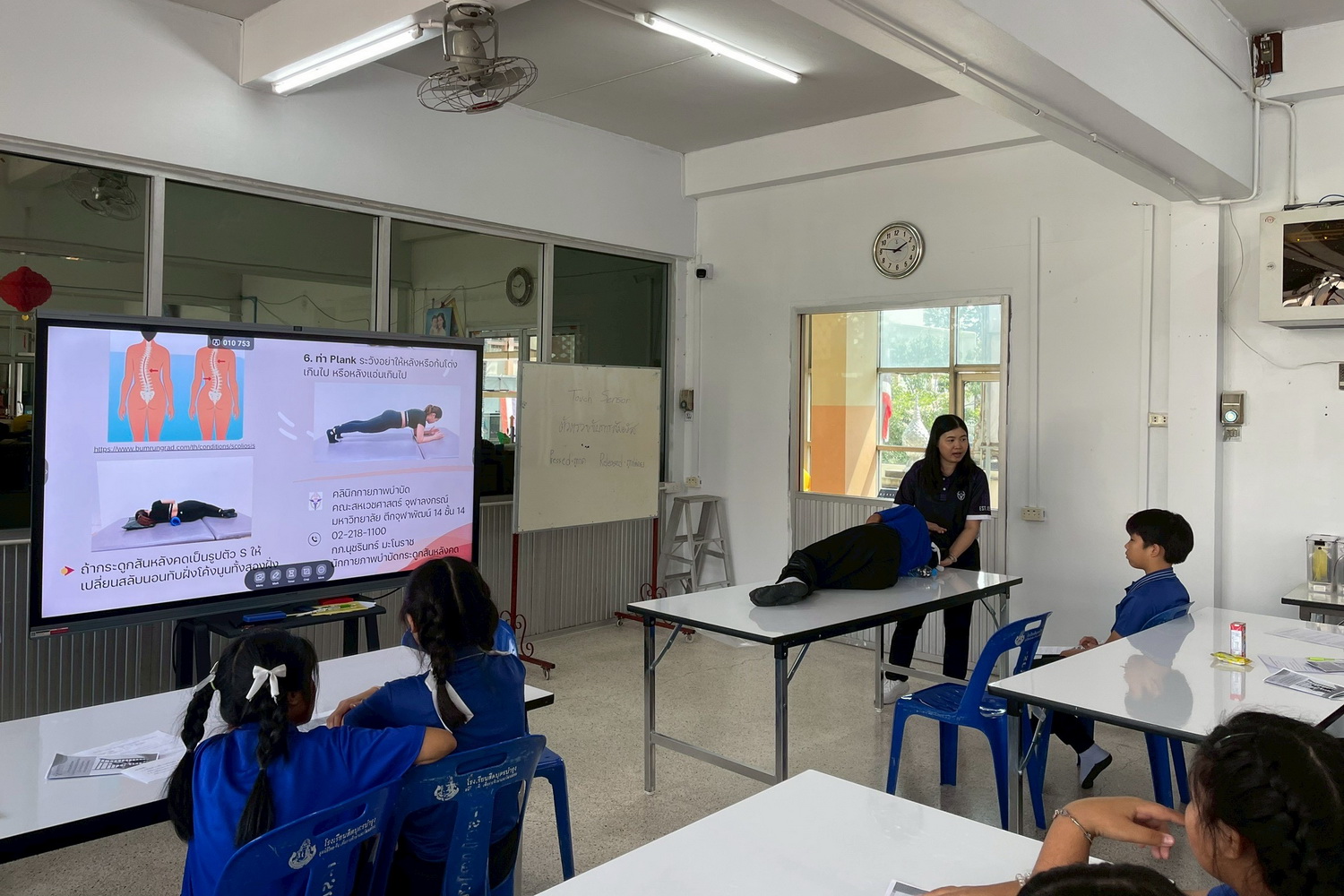 คลินิกกายภาพบำบัด หน่วยปฏิบัติการฯ คณะสหเวชศาสตร์ จุฬาฯ ได้ดำเนินโครงการตรวจประเมินภาวะกระดูกสันหลังคดเบื้องต้นในเด็กวัยรุ่นตอนต้น ณ โรงเรียนสีตบุตรบำรุง