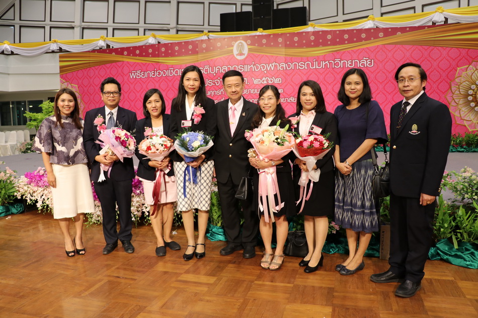 ในวันศุกร์ที่ ๑๓ กันยายน ๒๕๖๒ เวลา ๑๒.๓๐ น. ณ ศาลาพระเกี้ยว จุฬาลงกรณ์มหาวิทยาลัย รองศาสตราจารย์ ดร.ปาลนี อัมรานนท์ คณบดีคณะสหเวชศาสตร์ เข้าร่วมแสดงความยินดีและมอบกระเช้าดอกไม้แด่คณาจารย์และนิสิตคณะสหเวชศาสตร์ ที่ได้รับรางวัลในพิธีประกาศเกียรติคุณและยกย่องเชิดชูเกียรติบุคลากรแห่งจุฬาลงกรณ์มหาวิทยาลัย ประจำปี ๒๕๖๒ โดยมีผู้ได้รับรางวัลดังนี้