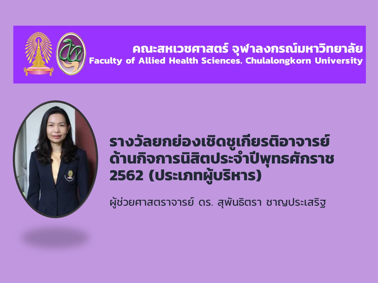 ขอแสดงความยินดีแด่คณาจารย์และนิสิต คณะสหเวชศาสตร์ ที่ได้รับรางวัลยกย่องเชิดชูเกียรติบุคลากรแห่งจุฬาลงกรณ์มหาวิทยาลัย
