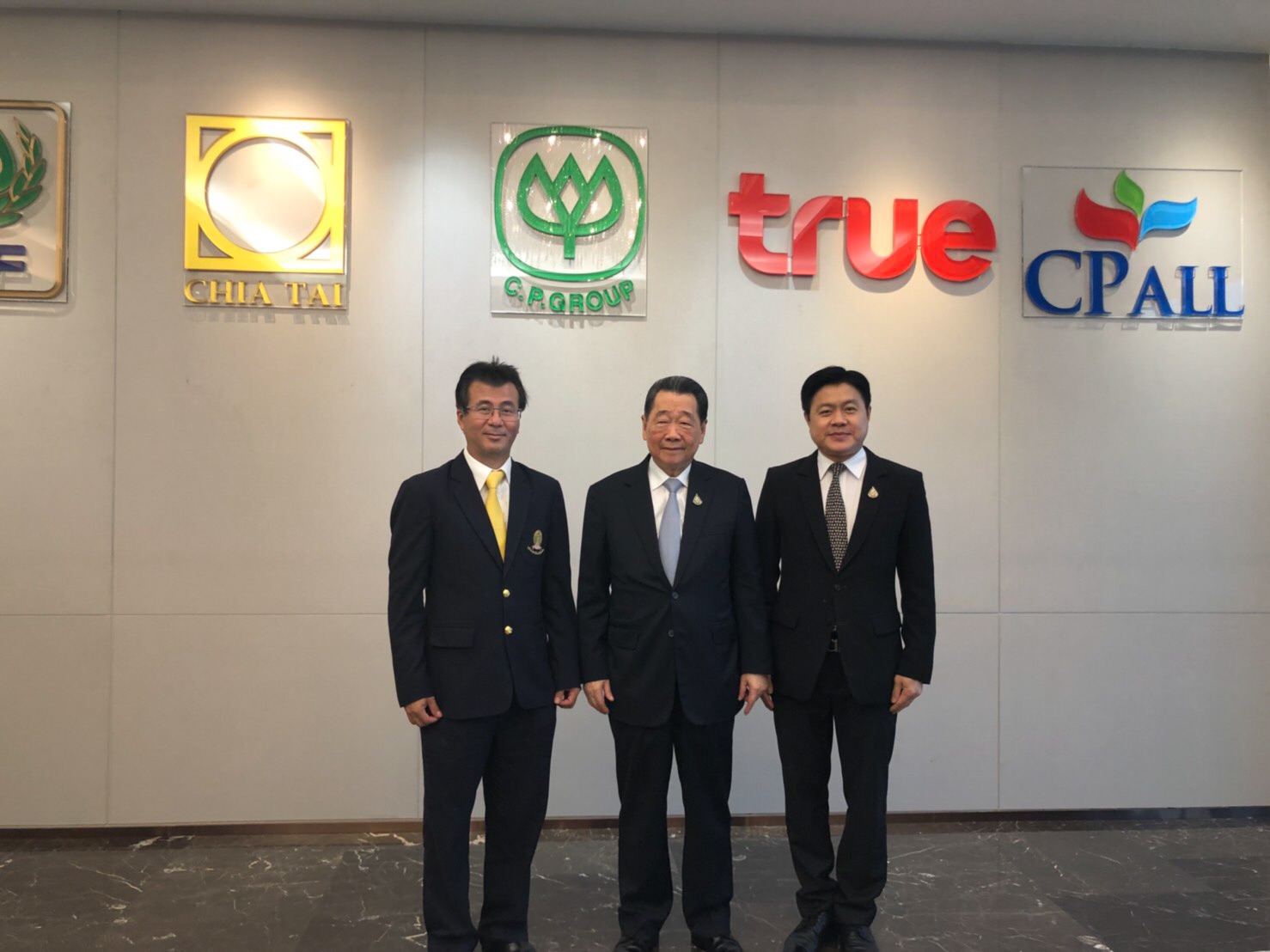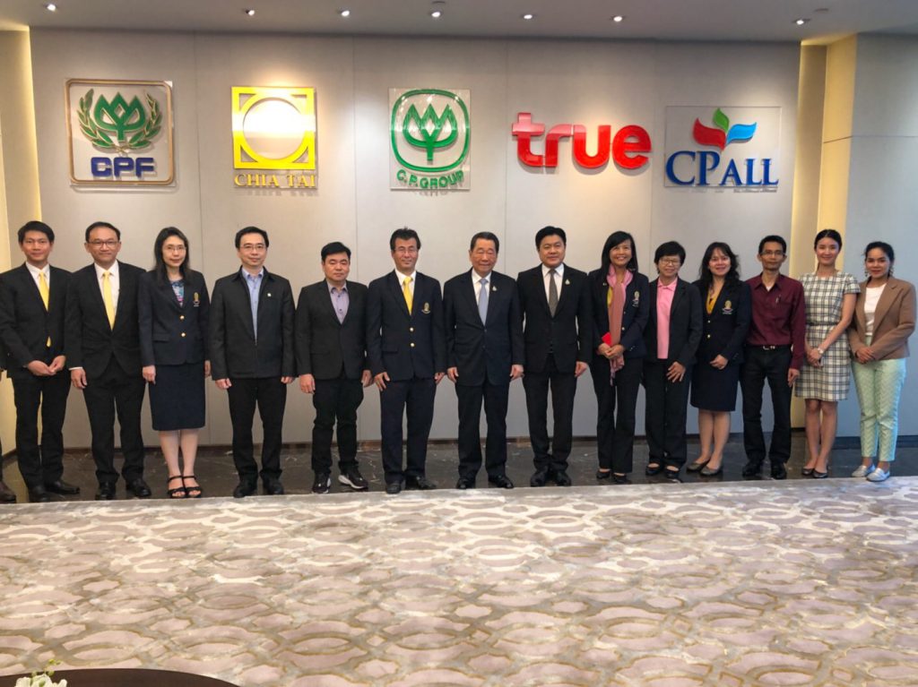เมื่อวันจันทร์ที่ 16 ธันวาคม 2562 ณ อาคารทรูทาวเวอร์ บริษัทเครือเจริญโภคภัณฑ์ จำกัด รศ.ดร.ธรรมนูญ หนูจักร (คณบดีบัณฑิตวิทยาลัย) ผศ.ดร.ทิพยเนตร อริยปิติพันธ์ (หัวหน้าภาควิชาโภชนาการและการกำหนดอาหาร คณะสหเวชศาสตร์) ศาสตราจารย์ ดร.นงนุช เหมืองสิน (ผู้ช่วยคณบดี คณะวิทยาศาสตร์) รศ.ดร. ขนิษฐา ธนานุวงศ์ (หัวหน้าภาควิชาเทคโนโลยีทางอาหาร คณะวิทยาศาสตร์) และคณาจารย์ จากจุฬาลงกรณ์มหาวิทยาลัย เข้าพบนายธนินท์ เจียรวนนท์ ประธานอาวุโส เครือเจริญโภคภัณฑ์ และ ดร.นริศ ธรรมเกื้อกูล ประธานผู้บริหาร ทรัพยากรบุคคล เพื่อเจรจาความร่วมมือด้านวิชาการและการวิจัยระดับบัณฑิตศึกษาของจุฬาลงกรณ์มหาวิทยาลัย กับบริษัทเครือเจริญโภคภัณฑ์ จำกัด